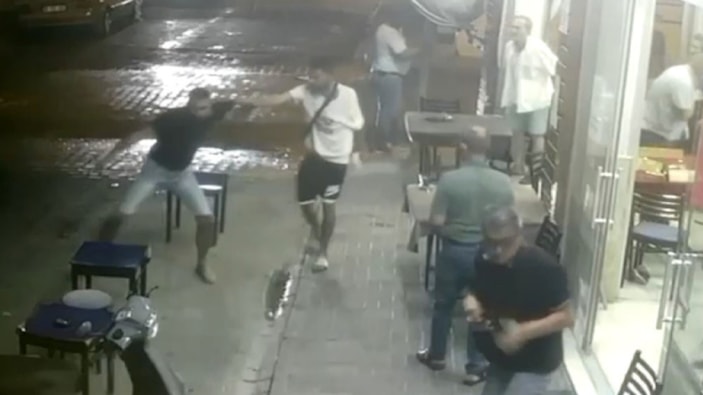 Kahvehaneninin önünde bir süre devam eden kavgada darbedilen kahvehane işletmecisi daha sonra eline geçirdiği sandalye ile G.D.'ye vuruyor.