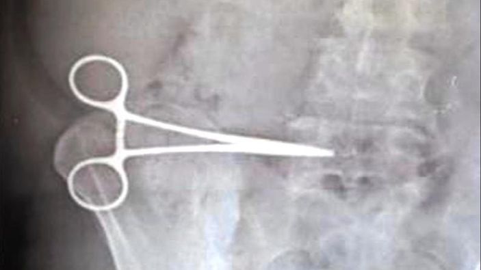Burada hastaya çekilen röntgeni inceleyen doktorlar, gözlerine inanamadı. Hastanın 2 aydır karnında unutulan makas ile yaşadığını fark eden doktorlar, Nurcihan Öğmen'i ameliyata alarak kadının karnında unutulan makası çıkardı.