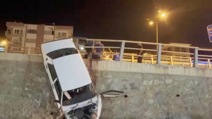 Aydın Kuşadası'nda demir korkuluklara çarpan otomobil uçurumda asılı kaldı. Araçtan fırlayan sürücü vücuduna saplanan demir korkulukla hastaneye kaldırıldı ancak kurtarılamadı.