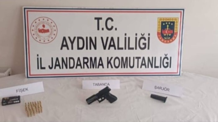 Koçarlı ilçesinde jandarma ekiplerinin şüphesi üzerine durdurulan şüphelinin üst aramasında 1 adet tabanca, şarjör ve 50 adet fişek ele geçirildi.