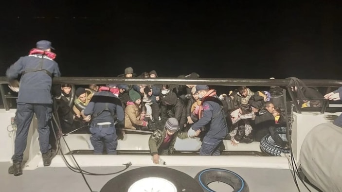 Sahil Güvenlik Kuzey Ege Grup Komutanlığı ekipleri, Ayvacık açıklarında lastik botlar içinde kaçak göçmenler olduğunun tespit edilmesi üzerine harekete geçti.