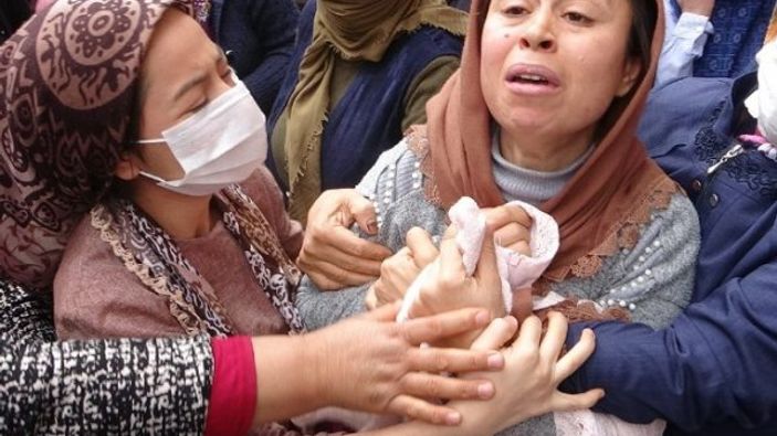 Rukiye Aslan, cenaze töreninden sonra gözyaşları dökerek feryat etti. Anne Aslan, “Cani baban utansın” diye haykırdı.