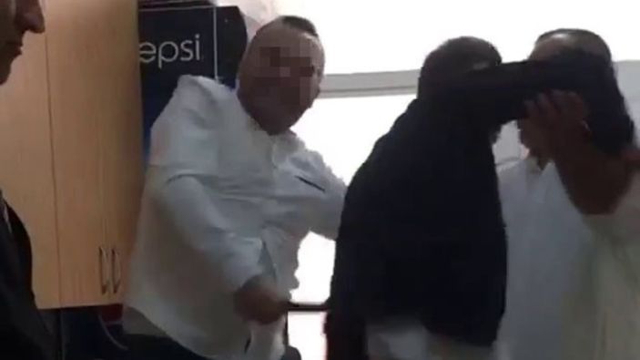 Tacizde bulunduğu iddia edilen kişi, daha sonra serbest bırakılırken yaşanan o anlar cep telefonu kamerasına yansıdı.