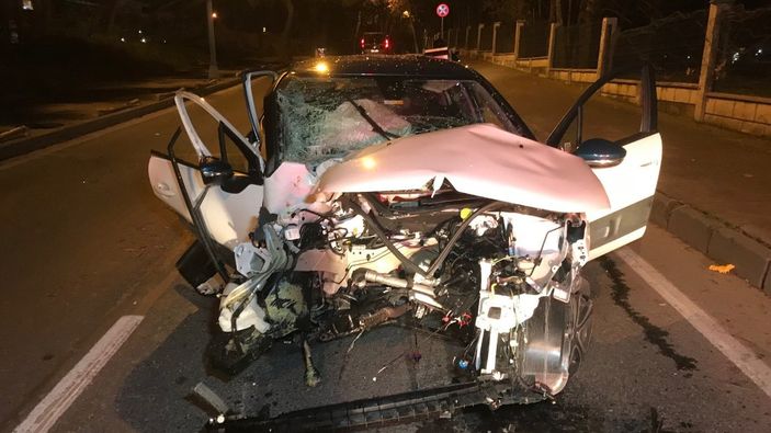 Otomobil çarpmanın şiddetiyle ikiye bölündü.