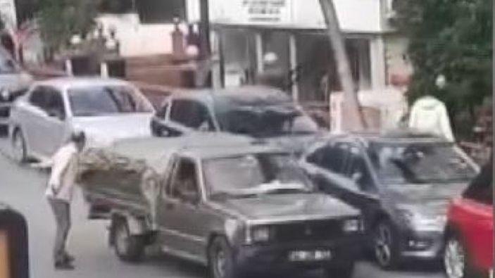 Levent Dağlaroğlu, bu kez ellerindeki satır ve kılıçla sokağa inerek çevredekileri tehdit ederken, geçen araçlara da kılıçla saldırmaya çalıştı.