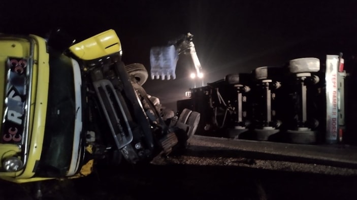 Devrilen tırda sıkışan şoför L.G. yaralanırken çevredekilerin ihbarı üzerine kaza yerine itfaiye, jandarma ve sağlık ekipleri sevk edildi.