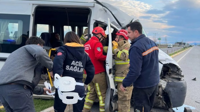 Balıkesir'de Ayvalık- İzmir karayolunda 42 yaşındaki Enis K. yönetimindeki fabrika işçilerinin taşındığı 10 AGE 782 plakalı servis minibüsü, Ayvalık istikametine dönmek isterken Abdullah A.'nın kullandığı 34 HPP 024 plakalı tır ile çarpıştı.