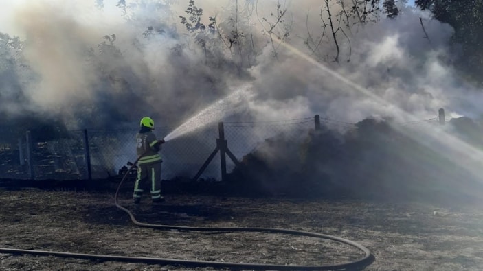 Gönen ilçesi Gündoğdu Mahallesi'nde saman balyalarında çıkan yangın, Gönen Grup Amirliğine bağlı itfaiye ekiplerinin müdahalesiyle kısa sürede kontrol altına alındı.