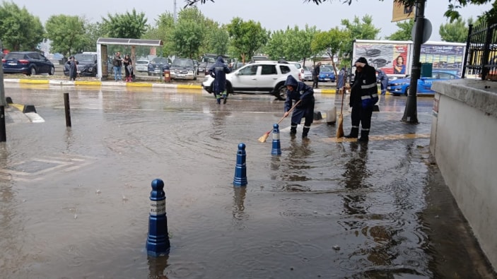 Yoğun yağış nedeniyle cadde ve sokaklarda su birikintileri oluştu.