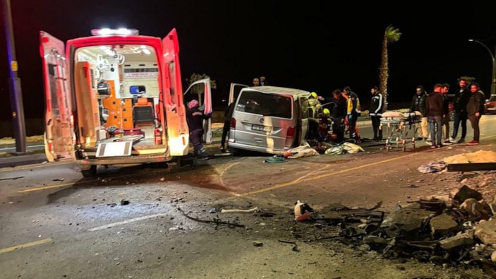 Edremit ilçesinde, refüje çarpıp devrilen minibüsteki Mehmet Yıldırım hayatını kaybetti, 4 kişi de yaralandı.