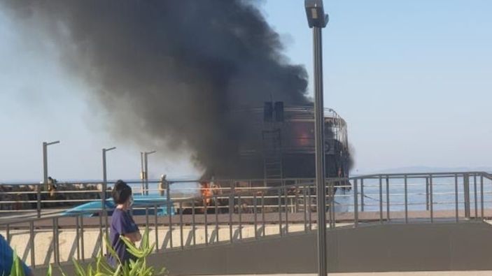 Balıkesir'in Edremit ilçesine bağlı Altınoluk'ta kıyıya yakın noktada demirlemiş olan tur teknesinde, henüz bilinmeyen nedenle yangın çıktı.