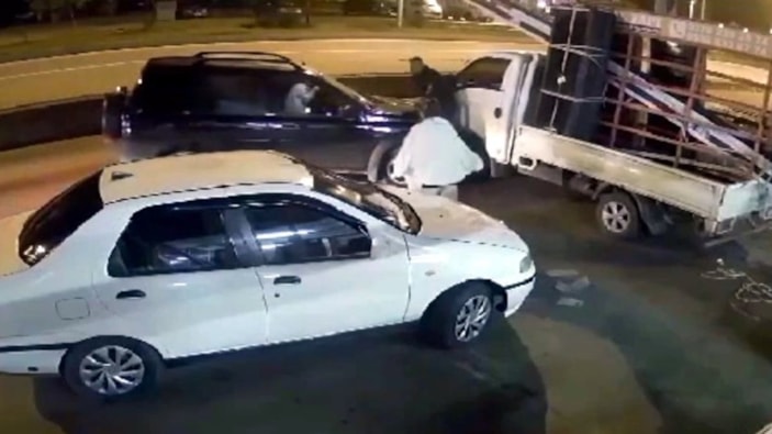 Saniyeler sonra meydana gelen ikinci kazada, kamyonetin hasar görüp görmediğini inceleyen ve sürücü olduğu belirtilen bir kişi ile yanında bulunan bir başka kişiye çarptı.