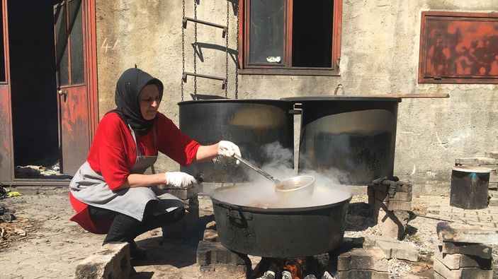 Pekmezin üretimiyle ilgili bilgi de veren Özsoy, ormandan topladıkları kozalakları kazanlarda kaynattıktan sonra yüzde 30 oranında şeker ilavesi yaparak kıvamını alana kadar kaynatmaya devam ettiklerini anlattı.
