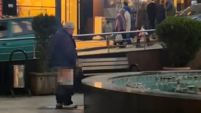 Bartın'da kimliği belirlenemeyen bir kişi, onlarca insanın gözü önünde süs havuzuna tuvaletini yaptı. O anlar saniye saniye kameralara yansıdı.