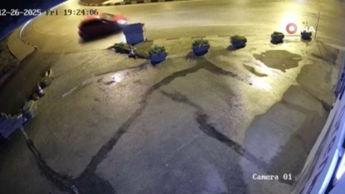 Feci kazanın yaşandığı anlar çevredeki işyerlerinin güvenlik kameralarına yansıdı.