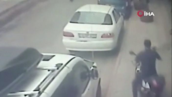 Bisikletle ile uzaklaşmaya çalışan hırsız önce önünde bulunan bir araca, sonra ise yolun karşısındaki kaldırıma çarptı.