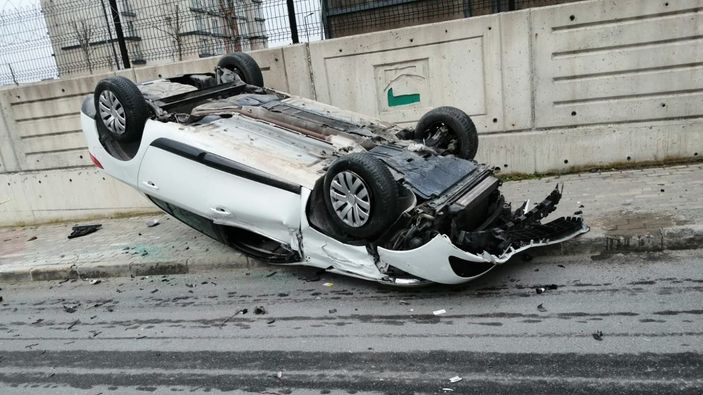 Başakşehir 2. Kısım Mahallesi'nde meydana gelen olayda, sürücüsünün direksiyon hakimiyetini kaybettiği otomobil, refüje çarptıktan sonra yan dönüp karşı şeritte sürüklenmeye başladı.