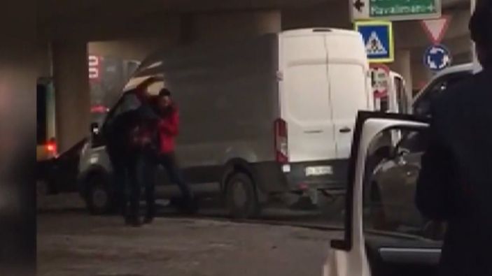 Taraflar hasara bakmak için araçlarından inerken, kamyonet sürücüsü bir anda karşı tarafa bir saldırmaya başladı.