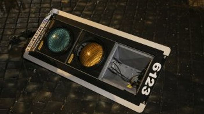 Çarpışmanın şiddetiyle kontrolden çıkan otomobil trafik ışığı levhasını da devirirken, her iki araç da yol kenarına savruldu.