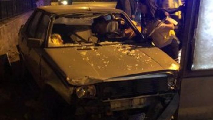 Kaldırıma çıkan otomobil reklam panosuna çarptı. Kazada 1 kişi yaralandı.