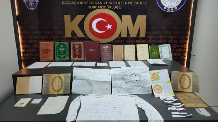 Şüphelilerin evlerinde yapılan aramalarında büyü yapmakta kullanıldığı değerlendirilen not kağıtları, defter, kitaplar ele geçirildi.