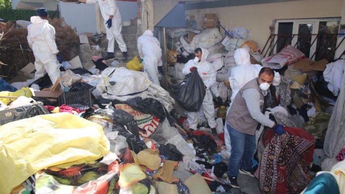 Evinden 2 kamyon dolusu çöp çıktı