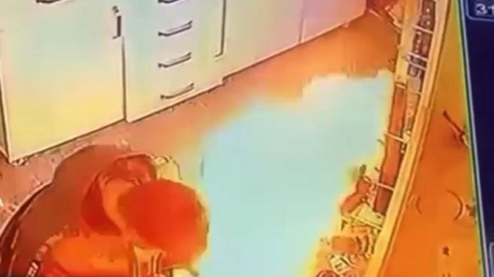 Arızalı telefon tamir sırasında bir anda alev aldı. Yaşanan korku dolu anlar güvenlik kamerasına yansıdı.