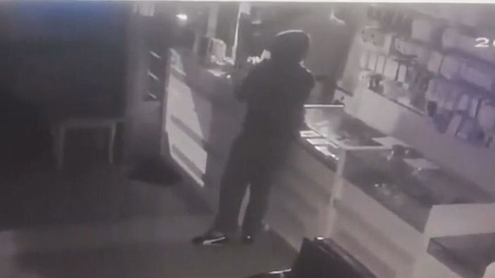 Maske takıp bir dükkana giren iki hırsızın telefonları çaldığı anlar, iş yerindeki güvenlik kamerasına yansıdı.
