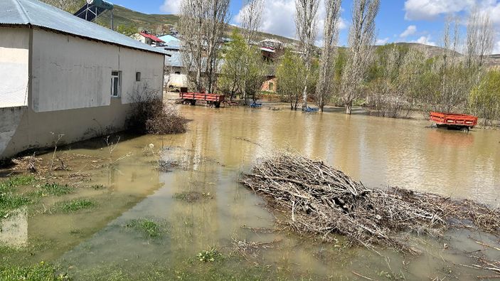 Cep telefonu kamerasına yansıyan görüntülerde ise köyün bir kısmının su altında kaldığı, taşan suların yerleşim alanlarına doğru hızla ilerlediği net bir şekilde görülüyor.