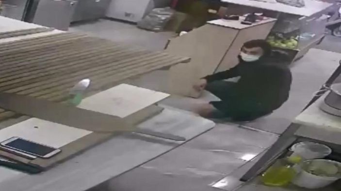İstanbul’un Bayrampaşa ilçesi Muratpaşa Mahallesi'ndeki bir lokantanın önünden geçen cerrahi maskeli hırsız, tezgahın üzerindeki cep telefonunu fark etti.