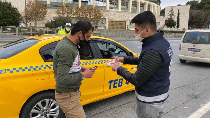 Dolmabahçe Caddesi üzerindeki denetimde ise, bir taksiyi durduran polis ekipleri içerideki yolcuya izin belgesini sordu.