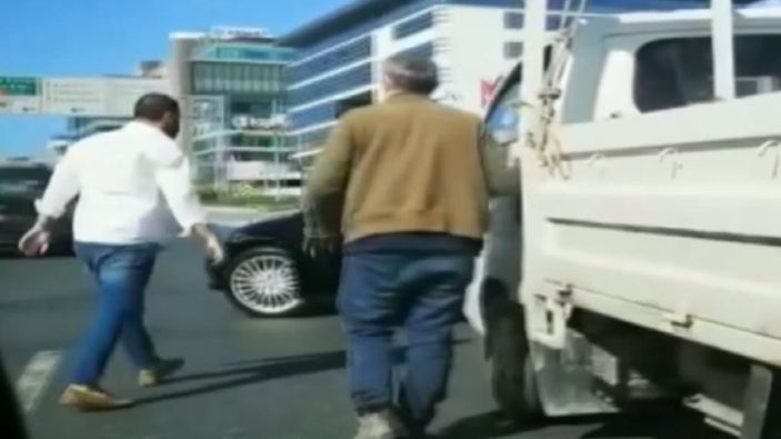 Araçlarını yolun ortasında durdurdukları için bir anda arkalarından trafik yoğunluğu oluştu. Diğer sürücülerin araçlarından inip müdahale etmesinin ardından kavga sona erdi.