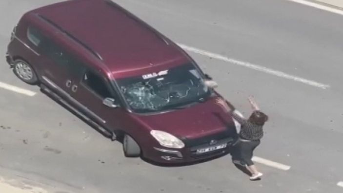 İHA'nın haberine göre kadın sürücü yerden aldığı taşla, karşı tarafın aracına zarar vermeye başladı. Camlara, aynalara, kaput ve ön kısımlara taşla defalarca vuran ve alkollü olduğu iddia edilen kadın, küfür ve tehditler de savurdu.