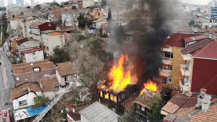 3 katlı ahşap binayı saran alevler çok geçmeden 2 binaya daha sıçradı. Olay yerine gelen itfaiye ekipleri yangını güçlükle kontrol altına alabildi.