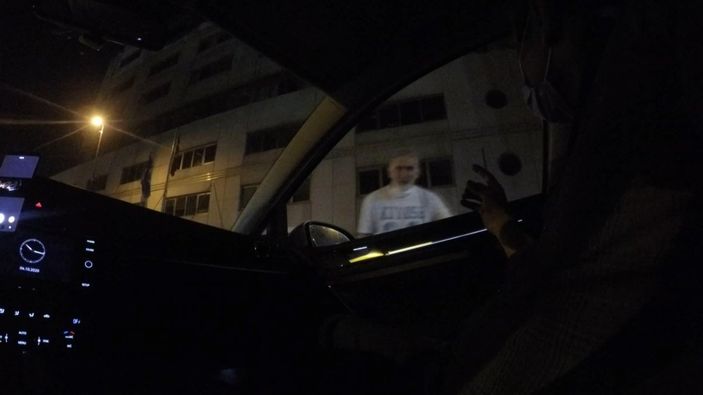 Değnekçilik yaparak sürücülerden 15 lira isterken kameraya görüntüleri yansıyan kişi, gözaltına alındı.