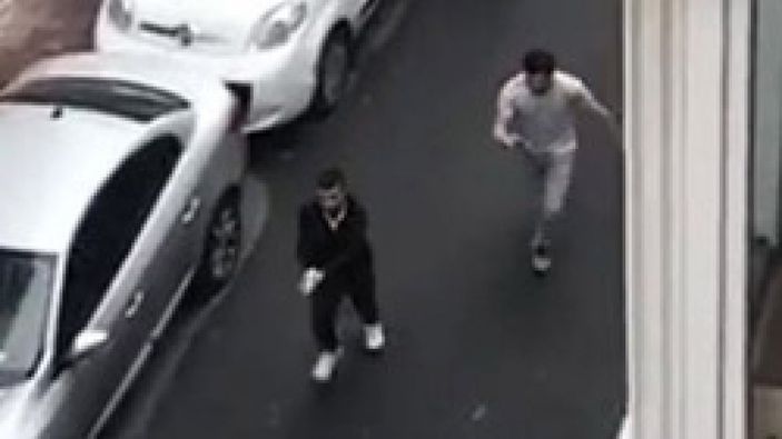 Öte yandan silahlı kavga bir vatandaş tarafından cep telefonu kamerasıyla kaydedildi. Görüntülerde, şüphelilerden birinin kaçanların arkasından silahla ateç açması yer alıyor.
