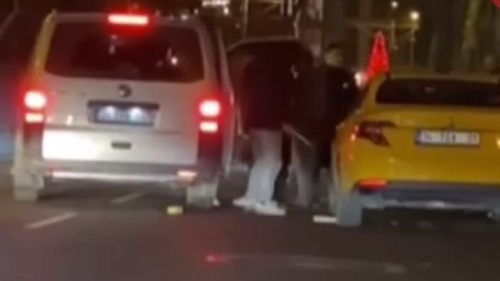 34 EHA 147 hafif ticari araç içerisinde bulunan kişiler, tartıştıkları taksi sürücüsünün önünü keserek durdurdu.