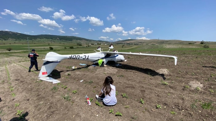 Bursa'dan havalanan eğitim uçağı, Bilecik Bozüyük'te arıza nedeniyle tarlaya indiği sırada ters döndü. Uçaktan yaralı kurtulan kadın pilot hastaneye kaldırıldı.