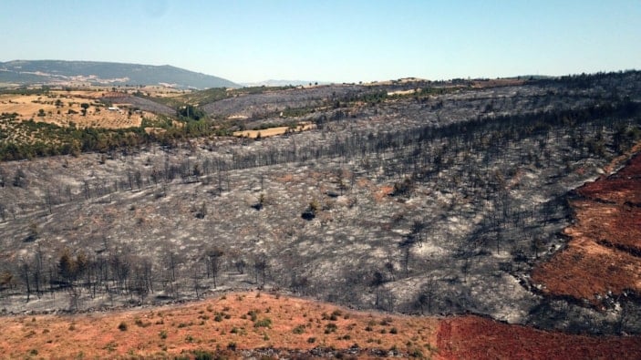 Dün Bilecik'in Osmaneli ilçesinde çıkan ve rüzgarın etkisiyle büyüyerek Bursa'nın Yenişehir ilçesi tarafında da devam eden orman yangını bugün kontrol altına alındı. Yemyeşil ormandan geriye küle dönen ağaçlar kaldı.