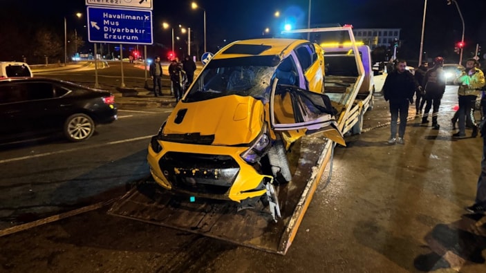 Olayda, sürücülerinin kimliği henüz belirlenemeyen yolcu otobüsü ile taksi çarpıştı.