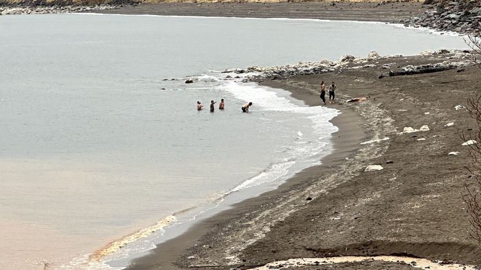 Daha da ilginci, aşağı yamaçlarda ve Van Gölü kıyısında vatandaşların yağmurlu havaya rağmen suya girerek yüzmeye devam etmesi ve piknik yapmasıydı.