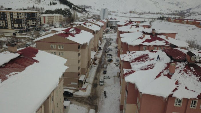 6-7 KATLI BİNALARIN ÇATILARINDA BİRİKEN KARLAR EKMEK KAPISI OLDU