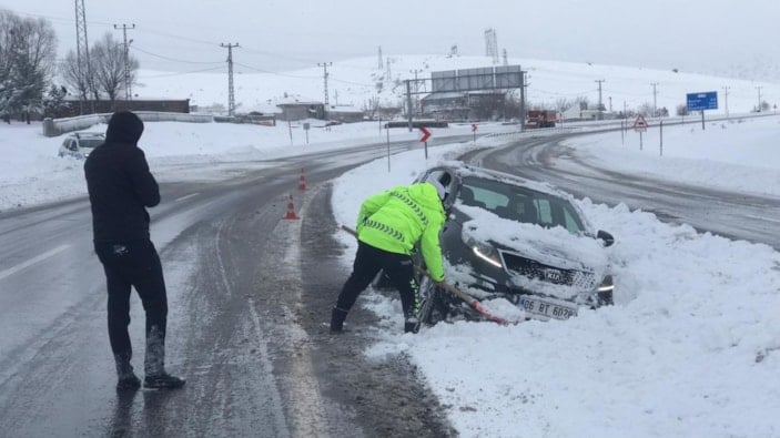 Araç sürücüleri, kendilerine yardımcı olan polis ekiplerine teşekkür ederken yetkililer, sürücülerin kış şartlarına uygun lastik kullanmaları, hızlarını düşürmeleri ve trafik kurallarına uymaları konusunda uyarılarda bulundu.