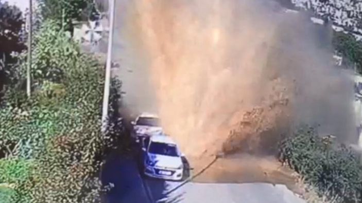 Ekiplerin bölgede çalışması sürerken, patlama anı ise bir sitenin güvenlik kamerası tarafından görüntülendi. Görüntüde, isale hattının patlaması ve otomobilin kaldırıma çıkması yer aldı.