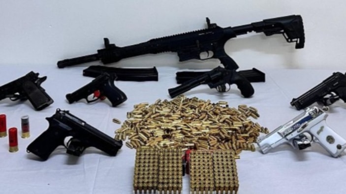 Yapılan aramalarda 6 adet 9 mm çapında tabanca, 1 adet ruhsatsız av tüfeği ve bu silahlara ait çok sayıda mühimmat ele geçirildi.