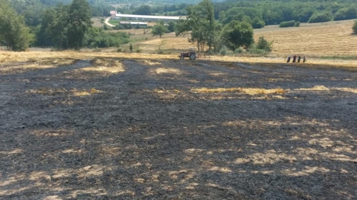 Saçcılar köyünde buğday tarlası biçerdöver tarafından hasat edildi ancak balya yapılmayı bekleyen buğday sapları, henüz bilinmeyen bir nedenle yanmaya başladı.