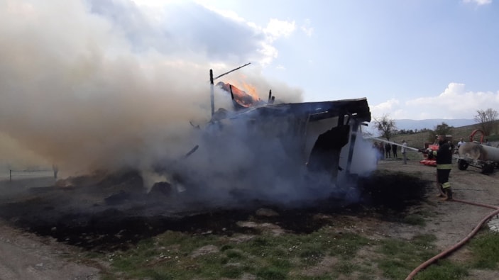 Kısa sürede büyüyen alevler samanlığa ve içindeki ekipmanlara sıçradı.