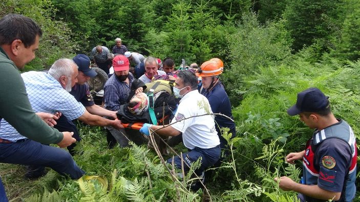 Bolu'da devrilen traktördeki anne ve oğlu yaralı kurtuldu