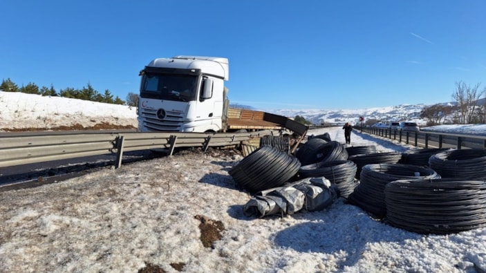 Hatay’dan Kocaeli’ne demir malzeme götüren tır sürücüsü, TEM Otoyolu’nun Bolu geçişinde direksiyon hakimiyetini kaybetti.