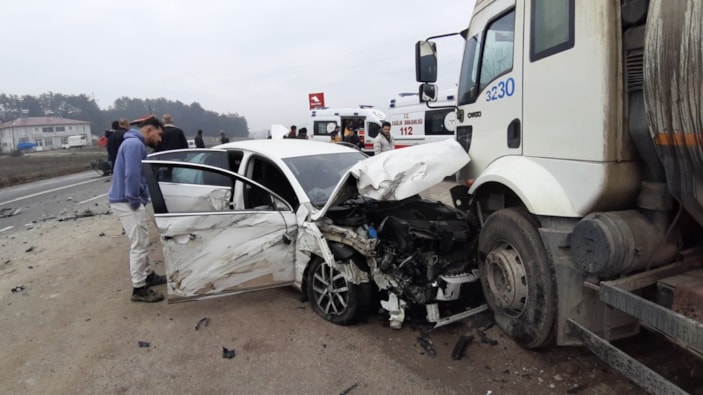 Bolu'da kaza yapan otomobil tıra çarptı: 2 yaralı